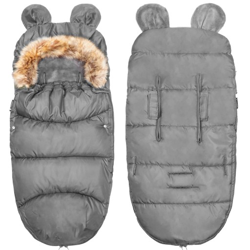 ТЕПЛЫЙ СПАЛЬНИК ДЛЯ КОЛЯСКИ, САНКИ С МЕХОВЫМИ УШАМИ, ПРЕМИУМ 4В1, 96см