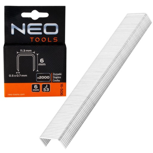СТЕПЛЕРЫ NEO ТИПА J/53 6 ММ 2000 ШТ. ОЦИНКОВАННЫЕ И ЗАКАЛЕННЫЕ 16-506