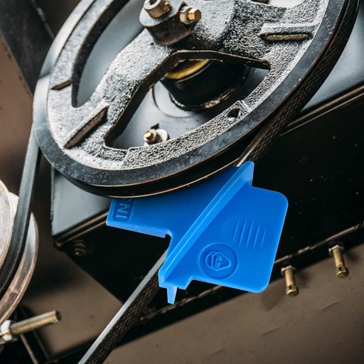 Nałożenie jednego przyrządu na koło pasowe podczas obrotu koła powoduje zsunięcie napiętego paska, drugi przyrząd powoduje nasunięcie paska na koło podczas obracania koła.