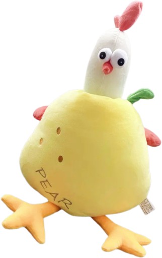 Kurczak ma również duże, śmiesznie wyblakłe łapki, które sprawiają wrażenie nieporadnych. Dzięki nim maskotka jest stabilna, więc można ją postawić na biurku, półce czy łóżku jako dekorację.