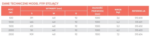 1500 W - powierzchnia pomieszczenia 19 m2