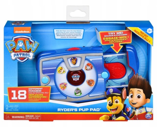Pomóż pieskom z Psiego Patrolu z sukcesem zakończyć misję ratunkową. Pomoże Ci w tym tablet Rydera wyposażony w 14 różnych efektów dźwiękowych. Obróć pokrętło na górze i wybierz Chase'a, Marshalla, Rubble, Skye, Rocky'ego lub Zumę. Po wybraniu pieska, uruchomią się efekty świetlne i usłyszysz frazy wypowiadane przez wybranego pieska, zupełnie jak w serialu! Aby rozpocząć misję, wyciągnij bok tableta, przekręć tarczę i naciśnij czerwony przycisk. Wyposażony w tablet Rydera, będziesz gotowy na ratunek, tak jak on! Aby mieć jeszcze więcej zabawy, wykorzystaj zestaw Zostań Bohaterem Chase'a i Marshalla (sprzedawane osobno)! Poczuj się jak Ryder, organizując misję z pomocą jego tabletu! Psi Patrol Tablet Rydera to świetny prezent dla dzieci od 3 roku życia. Zestaw wymaga użycia 2 baterii AAA Duracell (w zestawie). Spiesz na ratunek z tabletem Rydera! Zestaw zawiera: 1 tablet Rydera, 1 instrukcję użytkowania.