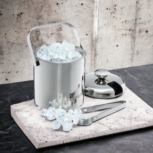 WIADERKO NA LÓD Z POKRYWKĄ I SZCZYPCAMI COOLER STAL NIERDZEWNA AMBITION