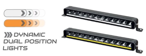 SKYLED SLIDE 14,5 LED BAR wyposażona w nowoczesne dynamiczne światło pozycyjne z białą jak i pomarańczową barwą (wybierana przy instalacji za pomocą dedykowanego przewodu dla danej barwy). Dynamiczne światło pozycyjne sprawia, że po włączeniu świateł zapala się w płynnym trybie nadając nowoczesny design.