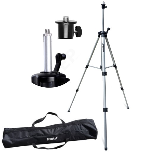 Statyw do stosowania z laserem lub innym urządzeniem np. aparatem fotograficznym czy kamerą. Statyw wykonany jest z aluminium co zapewnia lekką i stabilną konstrukcje. Maksymalna wysokość statywu po rozłożeniu wynosi 150 cm. Statyw posiada gwint montażowy 5/8" natomiast możemy go zredukować do 1/4" za pomocą adaptera, który znajduje się w komplecie.