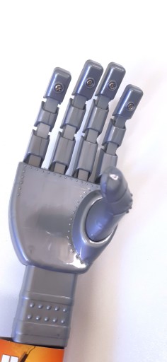Zabawka Ręka Mechaniczna to produkt bardzo solidnie wykonany i świetnie działający. Nie wymaga dużego nakładu siły aby dłoń Robo-Ręki się zacisnęła. Rączka ukształtowana specjalnie na palce by ułatwić wygodne korzystanie. Kciuk ułożony jest w pozycji przygotowanej do powitań na stałe. Poruszają się tylko pozostałe cztery palce synchronicznie. Mechaniczna ręka stanowi imitacje tylko i wyłącznie ręki prawej.
