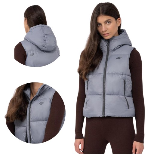 BEZRĘKAWNIK DAMSKI Z KAPTUREM 4F KAMIZELKA SPORTOWA PUCHOWA r. XXL