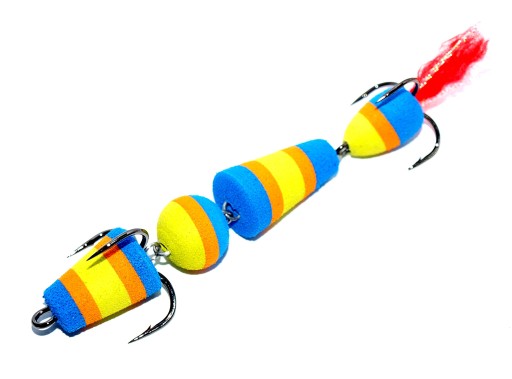 Wykonana z lekkiej, pływającej pianki EVA - postawiona na dnie unosi się ułatwiając drapieżnikom atak. Metalowe łączniki wykonane z mocnego, nierdzewnego drutu. Kotwice ostre, nierdzewne w kolorze czarnego niklu, w rozmiarach 3 i 5.