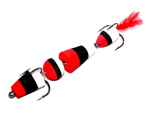 Wykonana z lekkiej, pływającej pianki EVA - postawiona na dnie unosi się ułatwiając drapieżnikom atak. Metalowe łączniki wykonane z mocnego, nierdzewnego drutu. Kotwice ostre, nierdzewne w kolorze czarnego niklu, w rozmiarach 3 i 5.