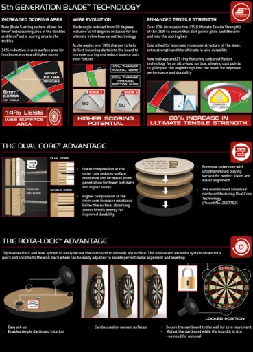 Jeśli chcesz zagrać ze swoimi dziećmi to jest to! Ta tarcza została stworzona z myślą o naszych najbliższych. Sama w sobie idealnie sprawdzi się podczas normalnej gry. Została wyposażona w dodatkową warstwę, sizalu która poprawia wytrzymałość tarczy i zapobiega tępieniu się lotek. "Pająk"- metalowa siatka oddzielająca pola punktowe na tarczy, jest cieńszy co znacznie zmiejsza ryzyko odbijania się lotek. Zastosowano również ostrzejszy kąt "pająka" (większa ostrość siatki) w porównaniu do Blade 4. Takie rowiązanie ma na celu skierowanie lotki w momencie uderzenia w siatkę, w pole punktowe.