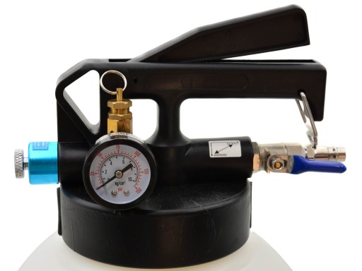 Pneumatyczna pompa ze zbiornikiem 10 litrów przystosowana do opróżniania i napełniania olejem automatycznych skrzyń biegów i mechanizmów różnicowych.