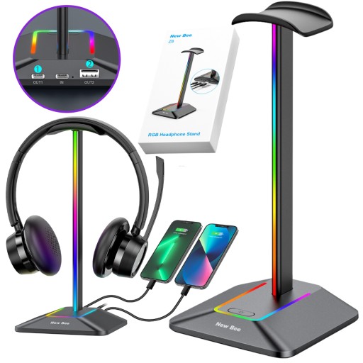 Штатив для игровых наушников Новая пчела RGB LED BATERLIGHT USB HUB