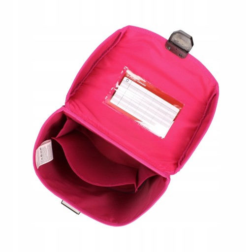 Duża komora z osobną przegrodą na książki, wyściełana podszewką z nadrukiem logo producenta