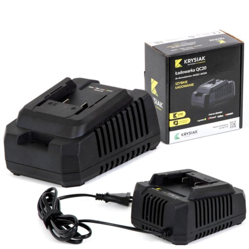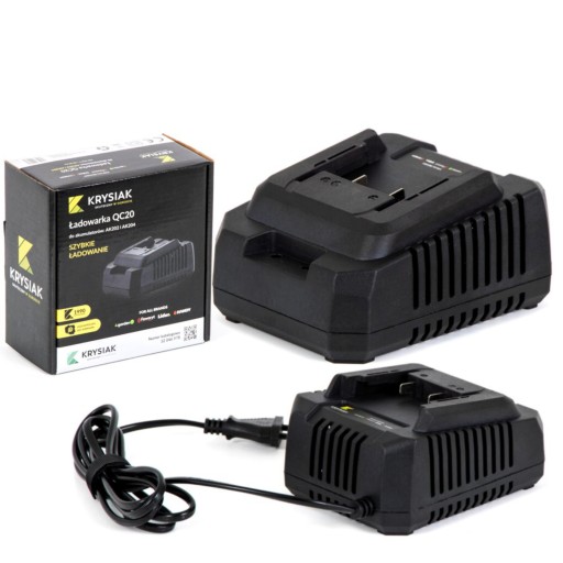 Ładowarka Krysiak QC20 do wydajnych akumulatorów litowo-jonowych pasujących do wszystkich urządzeń ogrodowych z rodziny 4garden, Faworyt Pro, Lider, Handy 20V i 2x20V