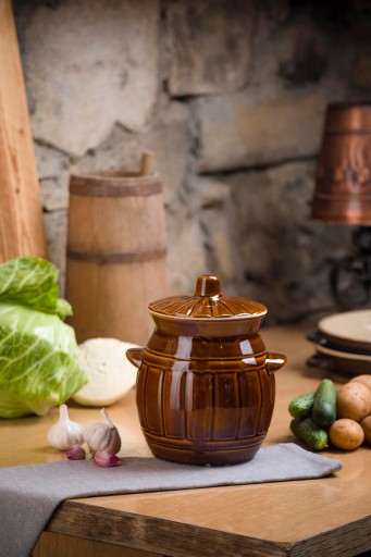 ГОРШОК, БОЧКА, КЕРАМИЧЕСКАЯ ПОСУДА, КРЫШКА ДЛЯ СОБИРАНИЯ ОГУРЦОВ, КАПУСТЫ, КЕРАМИЧЕСКАЯ, 2,7 Л.