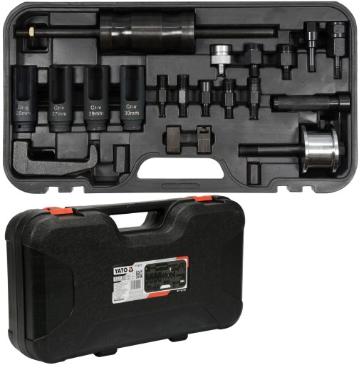 Rozbudowany zestaw ściągaczy bezwładnościowych do wtryskiwaczy Bosch, Delphi, Denso i Siemens oraz do pompowtryskiwaczy. Pozwala na sprawny demontaż wtryskiwaczy w różnych typach silników wysokoprężnych.