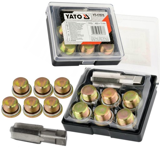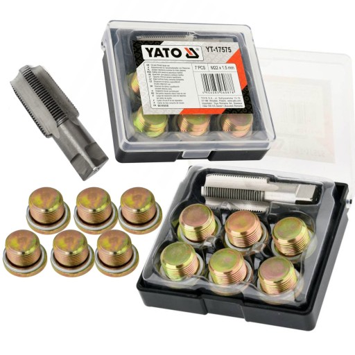 ZESTAW NAPRAWCZY KORKÓW MISKI OLEJOWEJ M22 X 1,5 ZAWIERA 6 KORKÓW Z ALUMINIOWYMI PODKŁADKAMI ORAZ DEDYKOWANY GWINTOWNIK
