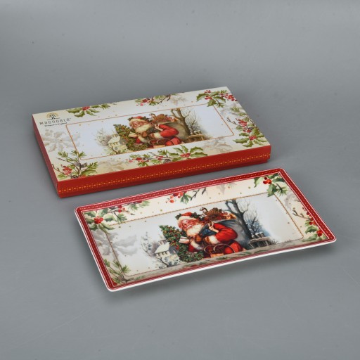Przepiękny porcelanowy półmisek z motywem świątecznym. Idealnie sprawdzi się również jako ozdoba stołu czy komody w domu i w pracy. Wykorzystasz jako samodzielną dekorację stołu, do serwowania potraw świątecznych. Ale nie tylko! Możesz na niej stworzyć piękne dekoracje okolicznościowe z okazji Świąt Bożego Narodzenia wystarczą tylko figurki, gałązki i troszkę kreatywności. Świetnie sprawdzi się jako pomysł na prezent.