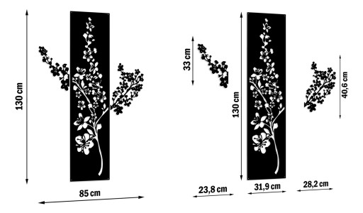 OBRAZ AŻUROWY DEKORACJA ŚCIENNA KWIATY DO SALONU PANELE TRYPTYK DUŻY XL