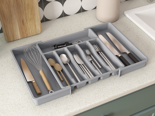 Zorganizuj swój blat kuchenny i zrób więcej miejsca dzięki organizerowi do szuflady.