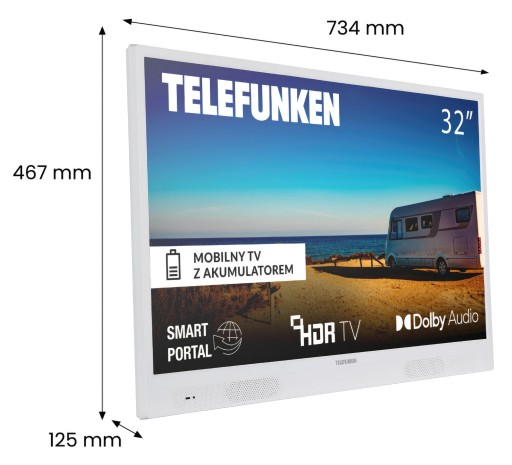 Telewizor TELEFUNKEN 32HGP7450W 32" LED DVB-T2-HEVC 24V. Akumulator 3H