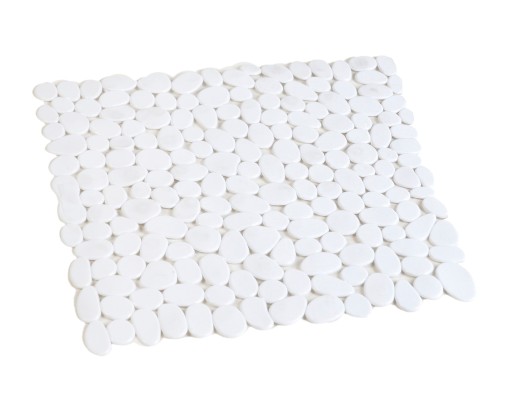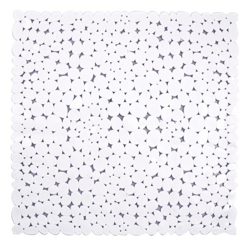 Kwadratowa, biała mata łazienkowa z motywem kamyczków
