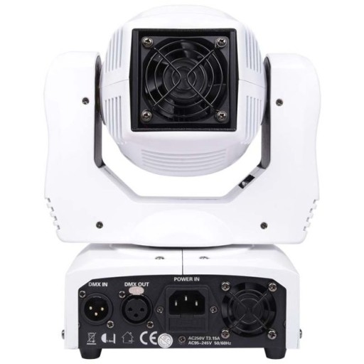 Na tylnej części obudowy reflektora znajduje się gniazdo zasilania oraz wejście i wyjście DMX. W części przedniej mieści się panel kontrolny, który składa się z wyświetlacza LED oraz czterech przycisków (Menu, Up, Down, Enter). Pozwala on na proste i intuicyjne sterowanie urządzeniem. Spot oferuje nam 4 tryby pracy: