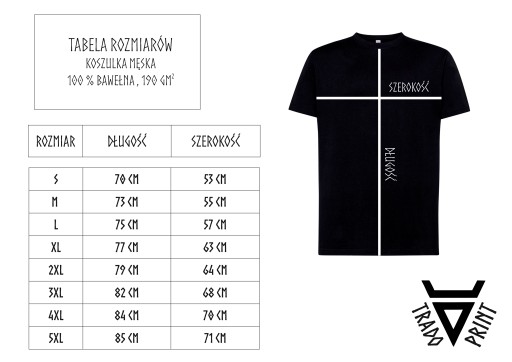 - Materiał koszulki: bawełna o gramaturze 190 gr