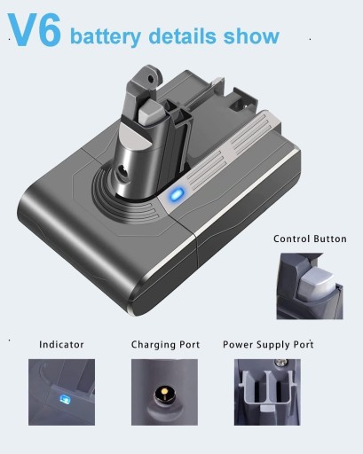 - Zamiennik do Dyson V6 Typ baterii: litowo-jonowa do ponownego ładowania | Napięcie: 21,6 V | Pojemność: 4000 mAh, wyprodukowana z wysokiej jakości ogniw i wytrzymuje 75% dłużej niż oryginalny akumulator V6.
