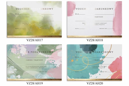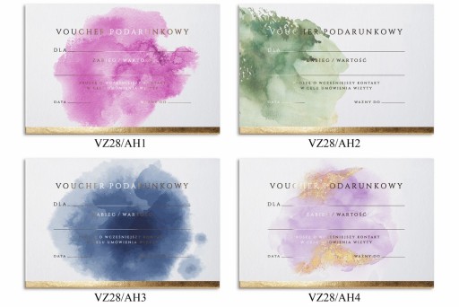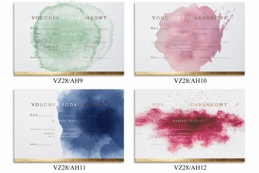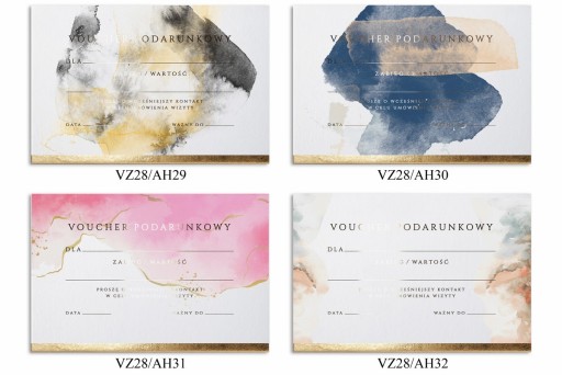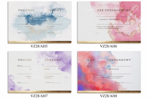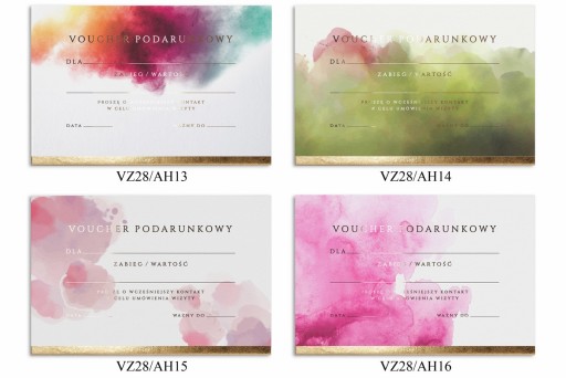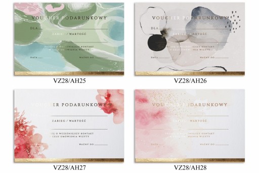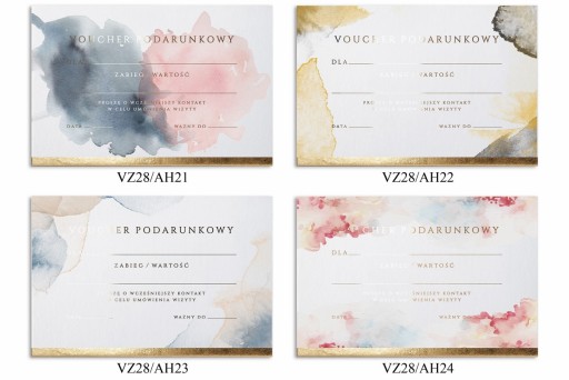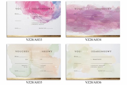 1) Voucher z nadrukiem kolorowym wraz ze złoconym tekstem