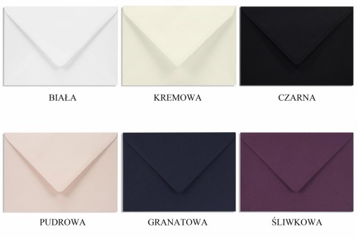 Koperta w kolorze: czarna, biała, pudrowa, granatowa, kremowa, śliwkowa