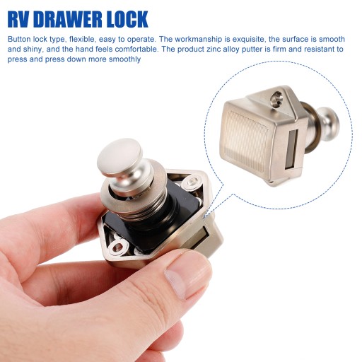 ✅Zaprojektowany, aby zapobiec otwarciu drzwi szafy z powodu turbulencji podczas poruszania się jachtami, statkami wycieczkowymi i pojazdami kempingowymi. Typ blokady przycisku, elastyczny, łatwy w obsłudze. Jakość wykonania jest znakomita, powierzchnia jest gładka i błyszcząca, a dłoń jest wygodna.
