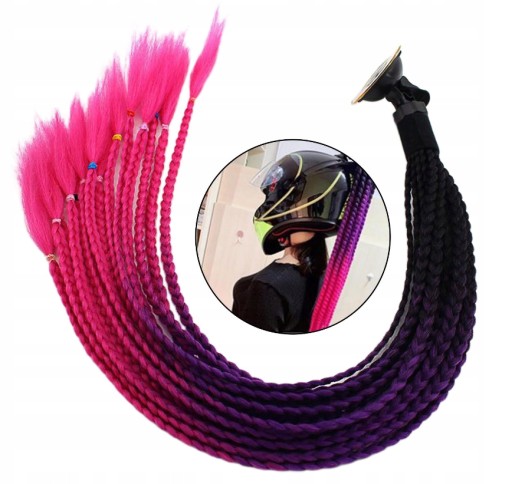 55cm Kask Z Włosiem Warkocz Gradient Ponytail Do Motocykla Black Rose Red niełatwa do upuszczenia, testna przy dużej prędkości Zastosowanie: akcesoria używane do każdego motocykla, kasków rowerowych, kasków do sportów zimowych, kasków na deskorolkę i deskorolkę itp Specyfikacja: Materiał: Drut wysokotemperaturowy peruki Długość: około 55 cm / 21,65 cala Fryzura peruki: wiązka włosów Długość peruki: średnio łącznik włosów Dotyczy ludzi: Unisex dorosły Pakiet zawiera: 1 sztuka Brudne warkocze 1 sztuka pałąk 1 sztuka Zapasowy klej