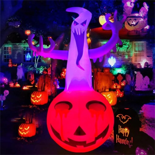 - Stwórz idealną upiorną atmosferę na Halloween dzięki 1.2m Halloween Inflatables Decorations Outdoor Ghost on Pumpkin. Ta nadmuchiwana dekoracja z pewnością przyciągnie uwagę zarówno dzieci, jak i dorosłych. Umieść ją na swoim podwórku lub na zewnątrz, aby przestraszyć i zachwycić wszystkich sąsiadów i gości.