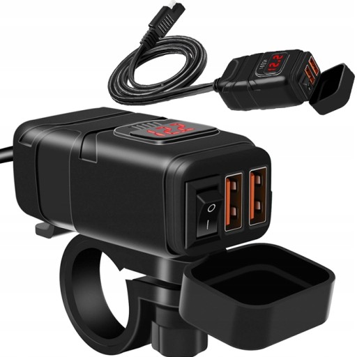 ЗАРЯДНОЕ УСТРОЙСТВО ДЛЯ МОТОЦИКЛА 2x USB QC3.0 БЫСТРАЯ ЗАРЯДКА