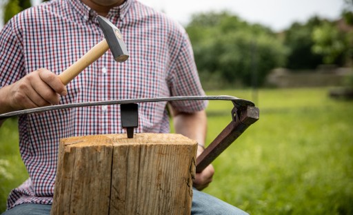 ✅ Służy do zaklepywania krawędzi ostrza kosy ręcznej przed zaostrzeniem jej osełką.