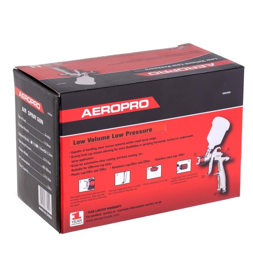 Jeden z lepszych pistoletów mini. Posiada boczne nawiewy powietrza więc strumień (miotła) prowadzi się stabilnie a farba równo pokrywa powierzchnię. Pistolet AEROPRO R100 może współpracować z małymi kompresorami zastępuje różnego rodzaju farby w sprayu.
