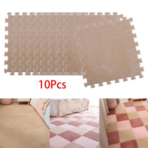 10 sztuk mata do zabawy dla dzieci 30x30cm pluszowa piankowa mata podłogowa z puzzlami kwadratowa brązowa