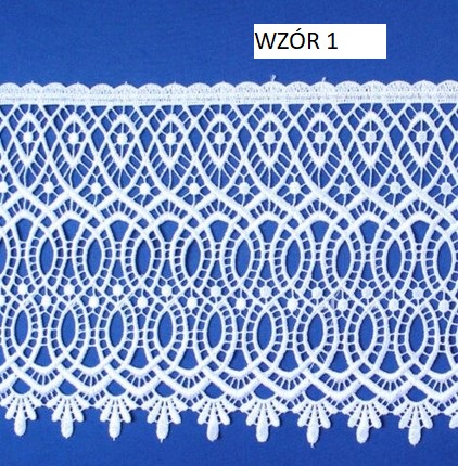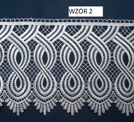 Dół firanki wykończony śnieżnobiałą gipiurą o wysokości 20cm, która jest doszyta– 2 wzory do wyboru -proszę o informację po dokonaniu zakupu, w przypadku braku informacji szyjemy z gipiurą wzór nr.1