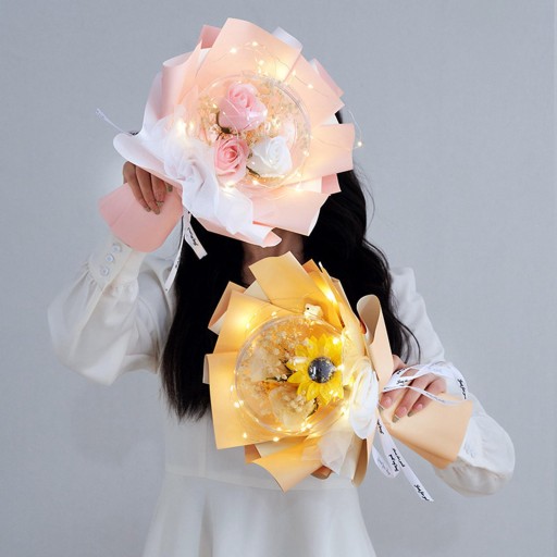 Prezenty świąteczne z bukietem kwiatów z lampkami łańcuchowymi dla żony Party Córka Pomarańczowy