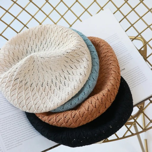 Letnie berety dla kobiet płaska czapka dzianiny Hollow berety Lady Girl berety kapelusz kości kobieta francuski kapelusz malarza czapka przeciwsłoneczna Gorra