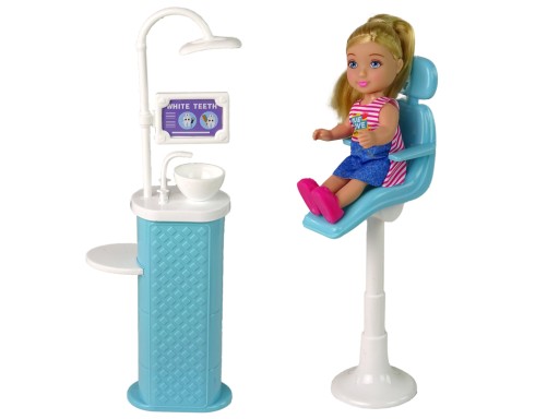 Przedstawiamy lalkę Anlily wykonującą zawód stomatologa. Zestaw z dodatkową lalką - małą pacjentką oraz akcesoriami pomoże Twojemu dziecku oswoić strach przed wizytą u dentysty a także zachęci do dbania o swoje ząbki, żeby były zdrowe i białe. W zestawie znajdziemy wszystkie elementy niezbędne do stworzenia gabinetu stomatologicznego. Fotel dentystyczny z unitem stomatologicznym to podstawa wyposażenia każdego gabinetu. Wszystkie akcesoria dodatkowe pozwolą na wykonanie badania i sprawdzenia, w jakiej kondycją są zęby naszej małej pacjentki. Wszystkie spostrzeżenia można zapisać na małej karcie pacjenta oraz po wizycie dać odpowiednią szczoteczkę i pastę. Lalki posiadają ruchome nóżki, rączki i główkę, można je ustawić w dowolnej pozycji.