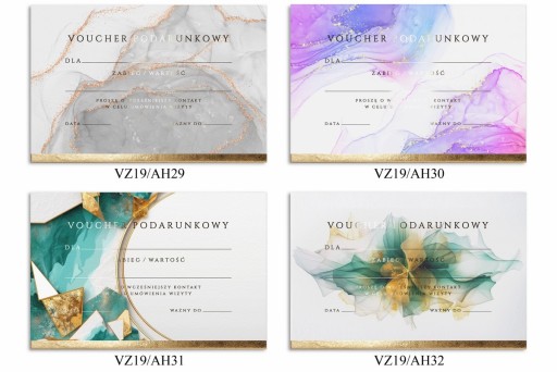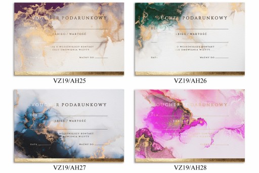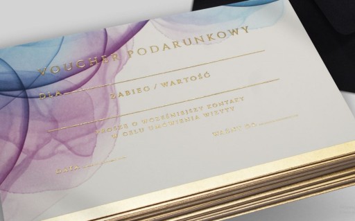 1) Voucher z nadrukiem kolorowym wraz ze złoconym tekstem
