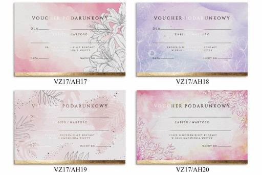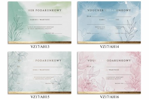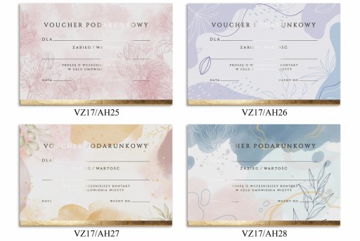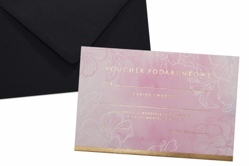 1) Voucher z nadrukiem kolorowym wraz ze złoconym tekstem