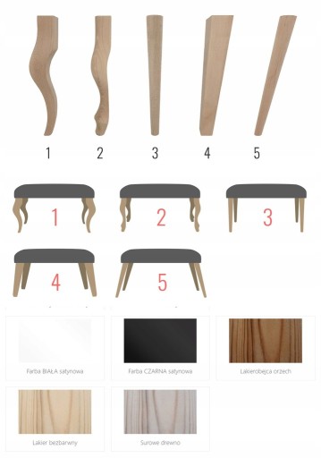 Nogi wykonane z naturalnego drewna bukowego. Do wyboru w kilku wersjach: