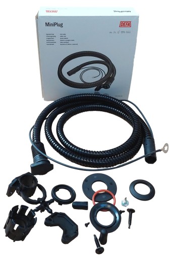 Przewód wewnętrzny DEFA 915 zasilający grzałkę silnika z opatentowanym gniazdem zewnętrznym 230 V do montażu na nadwoziu.