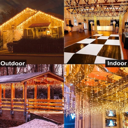 Ta zasłona z soplami lodu ma zimną zimny biały i białe ciepłe, można zmienić kolor zasłony świetlnej w zależności od potrzeb sceny. Za pomocą tylko jednego łańcucha świetlnego można osiągnąć dwa jasne efekty kolorystyczne.
