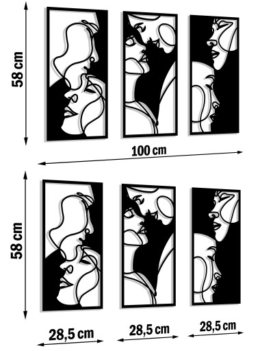 OBRAZ AŻUROWY DEKORACJA ŚCIENNA TWARZE 3D PARA SALONU PANELE TRYPTYK DUŻY