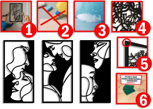 - W komplecie zestaw taśm montażowych samoprzylepnych i gwoździków ( 2 sposoby montażu do wyboru !!! ) dzięki którym super łatwo powiesisz obraz