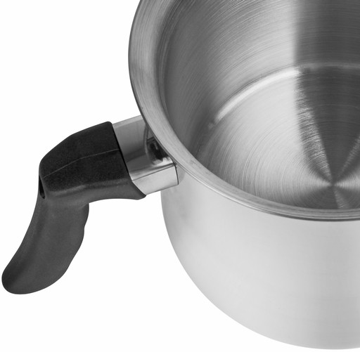 Garnek do mleka to niepowtarzalny element każdej kuchni. Mleko zagotujesz w szybki i łatwy sposób. Produkt został wyposażony w poręczny, czarny uchwyt, który zapewni pewny i stabilny chwyt w trakcie użytkowania. Umieszczony w produkcie gwizdek umożliwi zagotowanie mleka bez przypalenia, czy przegotowania.